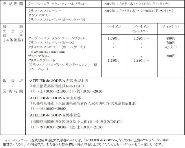 ゴディバ ジャパン株式会社は、ゴディバのクラフツマンシップ、そしてアーティストリーを感じ取れるゴディバ初の贅沢な空間「ATELIER de GODIVA」 にて、クリスマス限定スイーツを2019年11月6日(水)から1月21日(火)まで期間限定販売します。