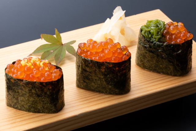 また、上品に旨味をかみしめたいという方には『いくら軍艦3種盛り』580円(税別)を用意。シンプルな「醤油漬けいくら軍艦」、柚子を利かせた「ゆずいくら軍艦」、昆布の旨味溢れる「めかぶいくら軍艦」の3種を同時に味わえます。