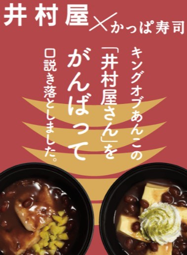 コロワイドグループのかっぱ寿司(カッパ・クリエイト㈱ 本社:神奈川県横浜市 代表取締役社長 小澤俊治)は、2019年11月7日(木)より、井村屋株式会社とコラボレーションし開発した『焼餅入りぜんざい -王道粒あん汁粉仕立て-』と『プレミアムプリンぜんざい -冷やし汁粉仕立て-』をかっぱ寿司全店にて販売します。