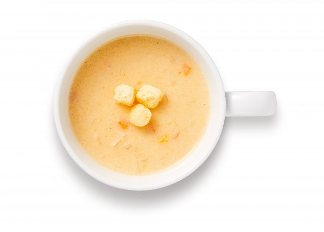 4種類のチーズ(クリームチーズ、ゴーダチーズ、エダムチーズ、カマンベールチーズ)とたくさんの野菜が入ったスープ