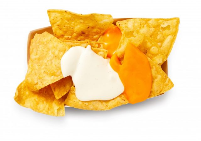 ホワイト&レッドチェダーチーズソースがかかったナチョス