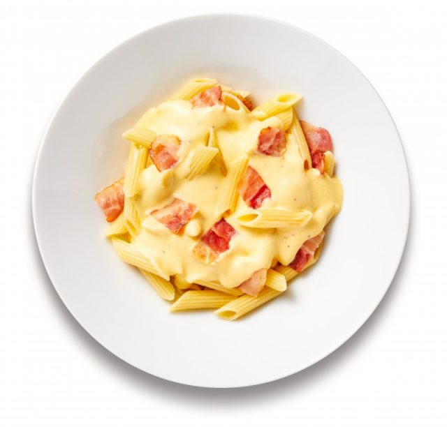 定番のチーズソースとベーコンのペンネカルボナーラ