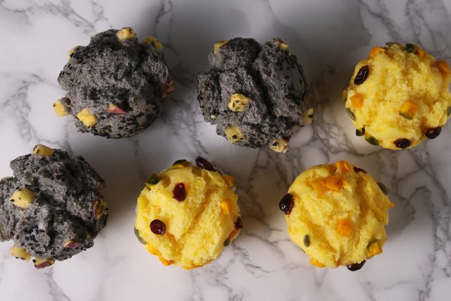 豆乳生地に練り込んだ黒ゴマの香ばしさと、コロっと入ったサツマイモの甘さが絶妙にマッチします。ふわりと香るゆずピールがさわやかなアクセントに。