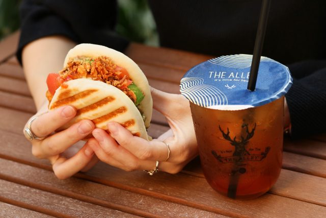 右手にBAO、左手にドリンクのスタイルで食べれるサイズ感ですが、見た目以上に食べ応えのある一品。しっかりとした味のBAOには、まろやかなミルクティーと一緒に味わうのがおすすめとなっています。