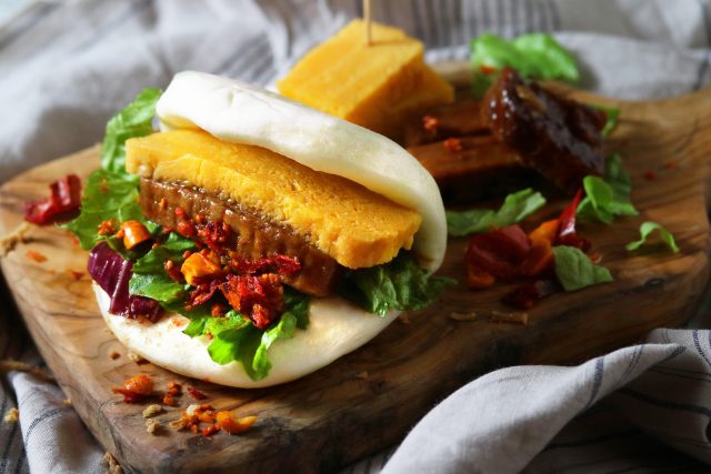 台湾王道のふんわり甘いBAOには、甘辛い角煮と厚焼玉子が相性抜群!