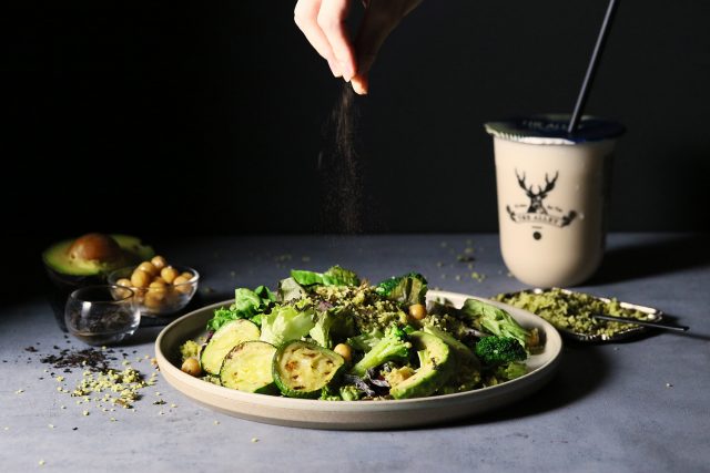 小山緑茶と塩昆布のクスクスジェノベーゼサラダ  750円(税抜)