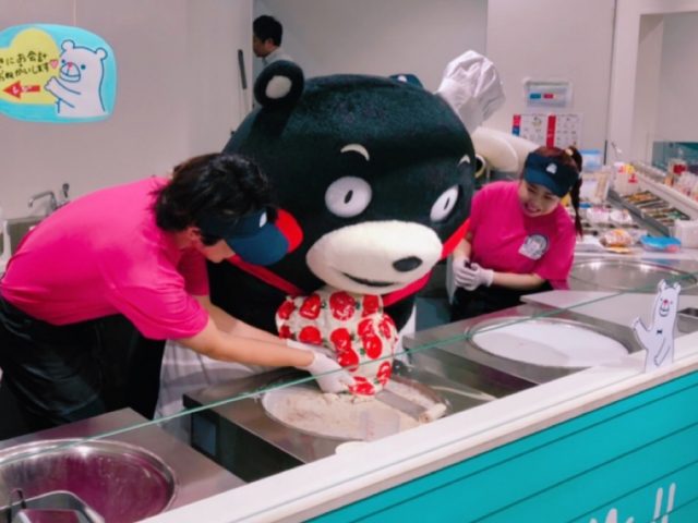今回のコラボは熊本県からお話をいただき、熊本の食材を使ったロールアイスを、ということで話を進めました。メニュー開発は、人気YouTuberの「おるたなChannel」氏と、自身でも「くまモンTV」というYouTube番組を持つくまモンがコラボし、YouTube上でロールアイス作りに挑戦した中で誕生したものです。
