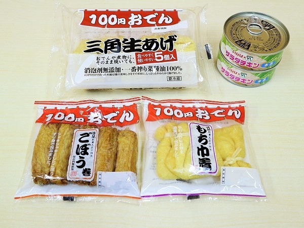 その他、たまごや豆腐など、すでに下味がついていて、味が染み込みやすくなっているという便利商品もあるので、『100円おでん』という目立つロゴを目印に、ぜひお鍋にも活用ください。