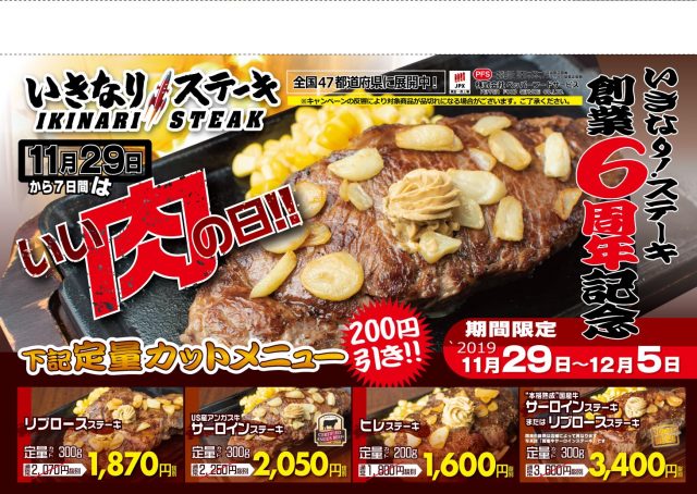 いきなり!ステーキ創業6周年記念キャンペーン