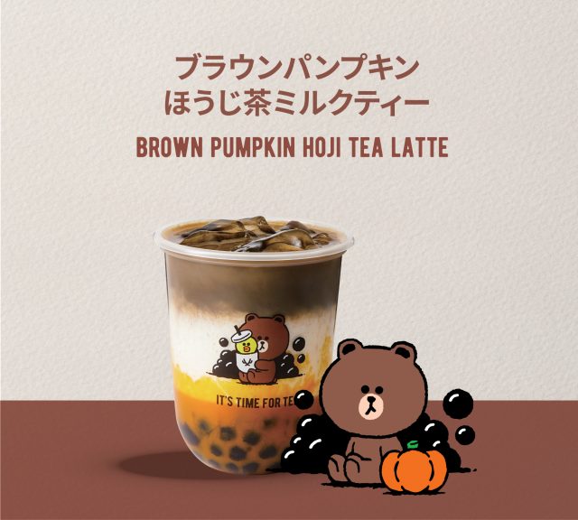 ブラウンカラーのコク深いほうじ茶ミルクティーは、ほろ苦さとほろ甘さが絶妙。パンプキンの味わいがプラスされ、さらに濃厚な味わいに。