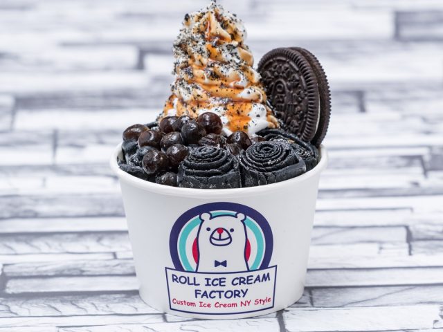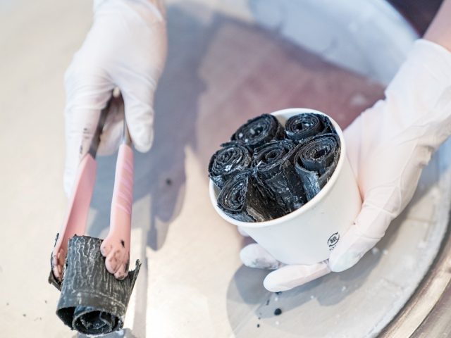 黒いロールアイスクリームに黒い食材を集めトッピングした、真っ黒にこだわった「ブラックフライデーロールアイス」を500円で発売します。