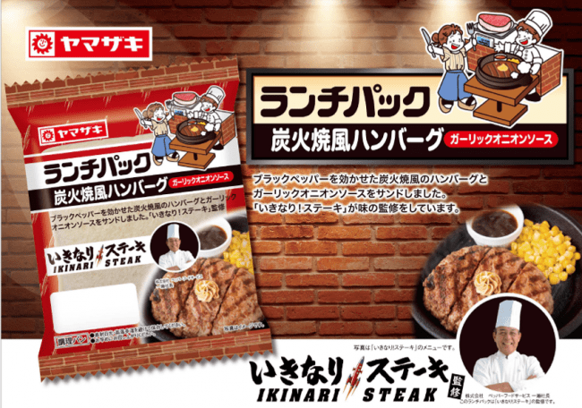 株式会社ペッパーフードサービス(本社/東京都墨田区・代表取締役社長CEO/一瀬邦夫)と、山崎製パン株式会社は、『いきなり!ステーキ』監修の製品として『ランチパック(炭火焼風ハンバーグ)ガーリックオニオンソース』を関東のスーパー、コンビニエンスストアにて、2019年12月1日(日)に販売を開始します。