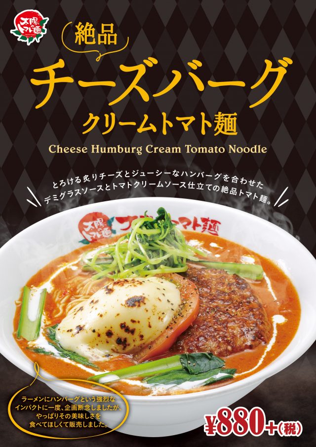 イートアンド株式会社は、トマトラーメン専門店「太陽のトマト麺」において、12月9日(月)より、冬季限定商品「絶品チーズバーグクリームトマト麺」を期間限定で販売開始します。
