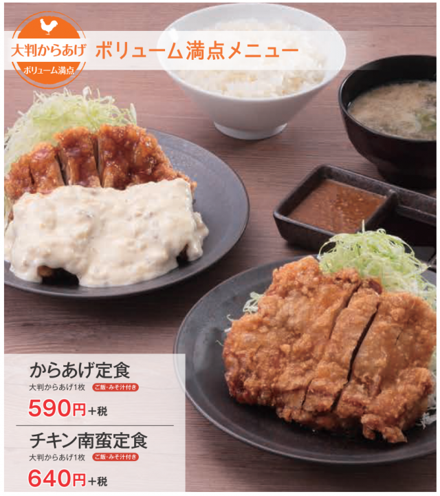 今回リニューアルするメニューは、以前多かった要望に応えて、大判からあげを使用したチキン南蛮定食が、満を持して再登場!