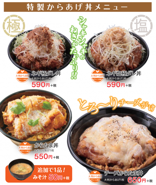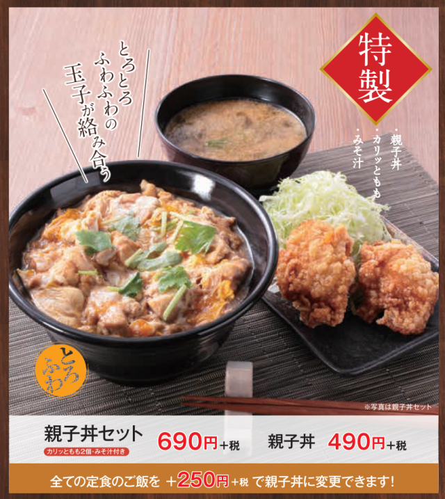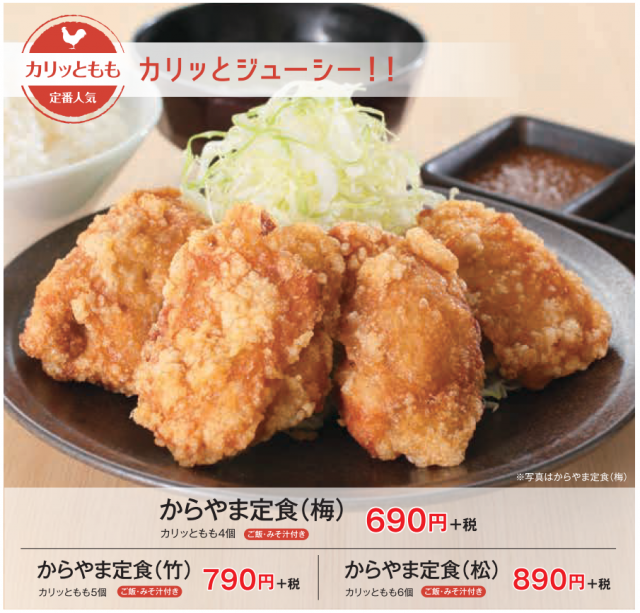 また、親子丼とカリっともものセットや、大判からあげ定食などの新しいメニューもラインナップし、からやまの魅力もグレードアップ!