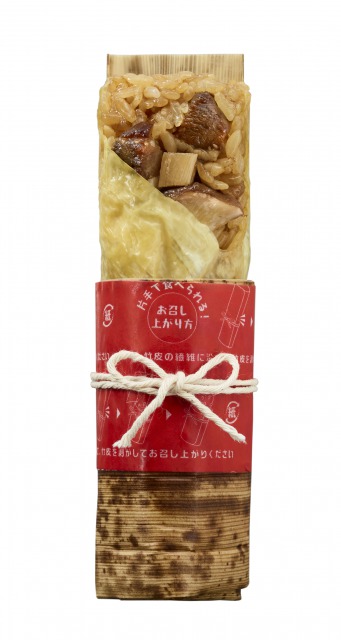 大きくカットした鶏肉と豚肉をじっくり煮込み、旨みたっぷりの煮汁を染み込ませたもち米ともちもちの食感が特長となっています。
