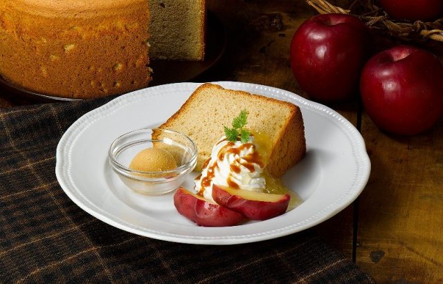 紅茶の豊かな香りが広がる上品なシフォンケーキに、紅玉焼きりんご、りんごジャム、塩キャラメルアイスを添えました。