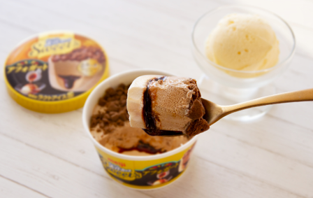 同商品は、バニラ風味アイスの上に、エスプレッソソース、コーヒー風味アイス、エスプレッソクッキーを重ね合わせることで、冬におすすめの“アフォガート”の味わいを表現しました。また、冷凍下でも固まらないエスプレッソソースを開発し、スプーンを入れた瞬間にとろっとしたソースが流れ出ることで、上品なアフォガートの味わいを実現しています。