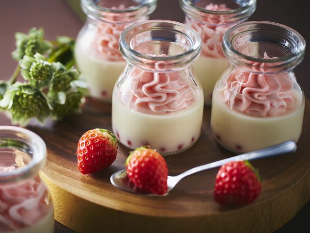 プチっと苺のコーティングジュースとブランマンジェ