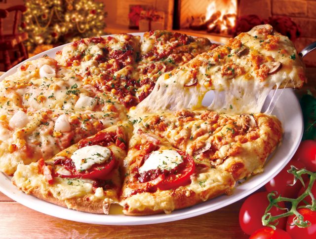 2017年春にピザーラ創業30周年を記念して「ボリューム感」と「バラエティ感」のある“よくばり”なピザというコンセプトで、Mサイズで“イチキュッパ”の¥1,980(税抜)と購入しやすい価格で販売を開始した『よくばりクォーター』。