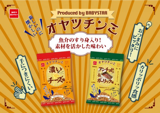 株式会社おやつカンパニー(本社所在地:三重県津市 代表取締役社長:手島文雄)は、ベビースターの製法を応用した”手につきにくい”新感覚おつまみ「オヤツチンミ(濃いチーズ味/アンチョビ&ガーリック味)」を、2019年12月16日(月)より、全国にて発売します。