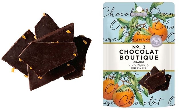 オレンジピールをセミスイートチョコに合わせた苦みと酸味のバランスが絶妙な程よい甘さのチョコレート