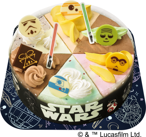 スター・ウォーズのキャラクターたちがポップなデザインで登場するスペシャルなアイスクリームケーキは、スター・ウォーズ ファンに贈る、サーティワンの自信作。数量限定となっています。