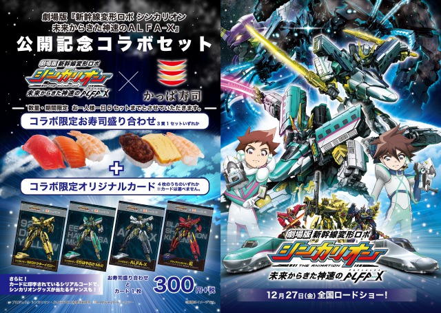 コロワイドグループのかっぱ寿司は、劇場版『新幹線変形ロボ シンカリオン 未来からきた神速のALFA-X』の公開を記念し、2019年12月21日(土)より、公開記念コラボセットを販売します。