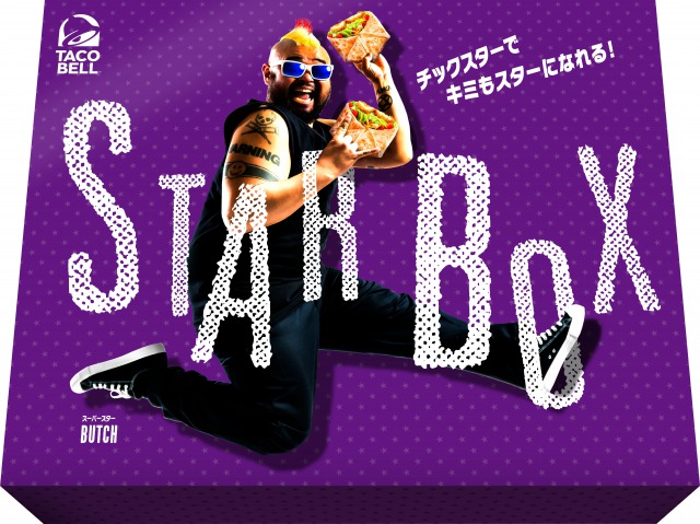 「STAR BOX」とは、今回のPRメッセンジャーであるスーパースター・BUTCHさんになりきることができるアイテムが収納されたスペシャルBOX。BUTCHさんのトレードマークにちなんだ、スターモヒカン(モヒカン風ウィッグ)、スターサングラス、スターネックレスを身にまとって、「チックスター」を片手に持てば、スター気分が味わえること間違いなしの品となっています。スターになったあなたが次回チックスターコンボを無料でゲットできるクーポンも入っています。