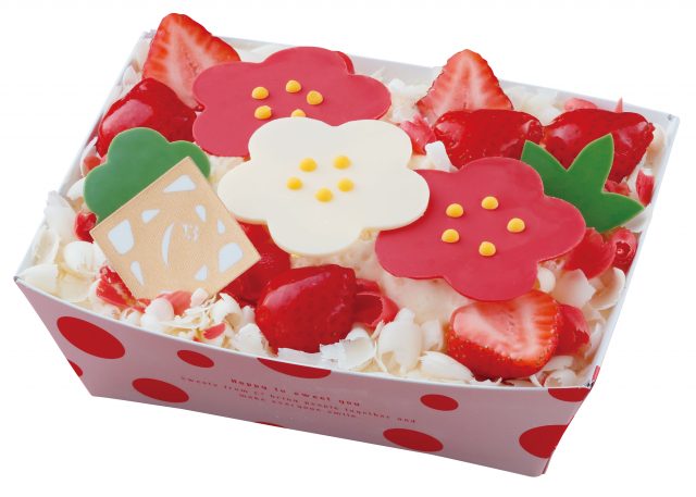 女性に高い人気を誇るいちごのティラミスを、迎春らしく可愛らしい梅型のチョコレートを天面に飾り、販売します。甘酸っぱいいちごと、風味豊かなマスカルポーネクリームとのハーモニーを楽しめるようになっています。