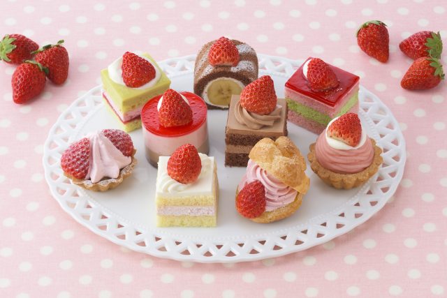 夢のような苺づくしにうっとり♪苺のおいしさを堪能できるプチケーキのアソート。全てのケーキに苺を使っています。どれを食べようか迷ってしまいそう!
