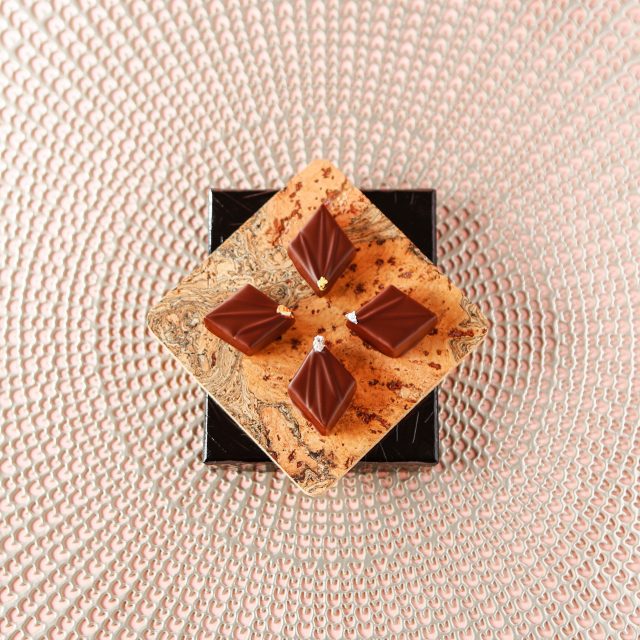 カカオ本来の風味を堪能できる、4種類の味わいのボンボンショコラの詰め合わせとなっています。