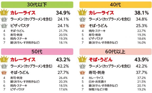 @niftyの調査によると「おせちに飽きたら食べたくなる料理ランキング」では、「カレーライス」という回答がほぼ全ての年代で1位となっています。お正月明け、少し味が濃く刺激があるものを食べたいと感じた時におすすめです。