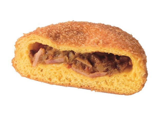 牛すじ入りのカレーパンです。チャツネやグレービーソースを使用し、まろやかな味わいに仕上がっています。