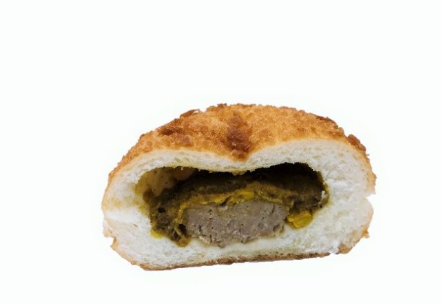 人参、コーンが入った辛口カレーと柔らかいハンバーグが入ったボリュームたっぷりのカレーパンです。