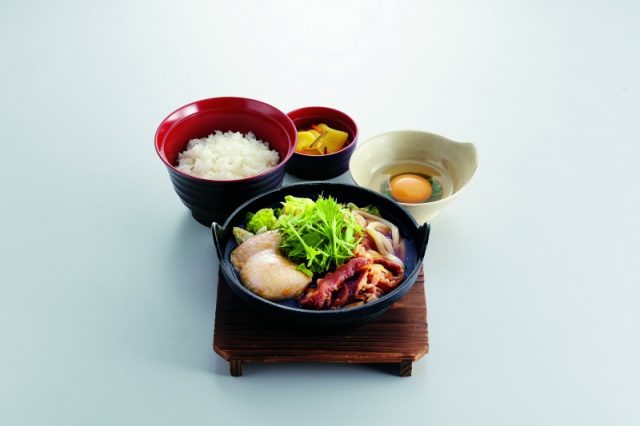 〈すき焼き鍋&広島県産かきフライ定食〉、〈すき焼き鍋定食〉