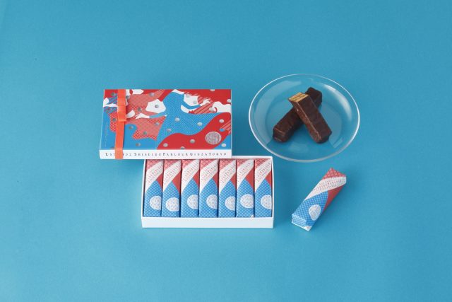 スイートチョコレートに包まれたパイが、さくさくっと小気味よく香ばしい。プラリネクリームとパイのバランスも絶妙です。銀座のモダンガールが踊る、華やかなデザインのパッケージ。