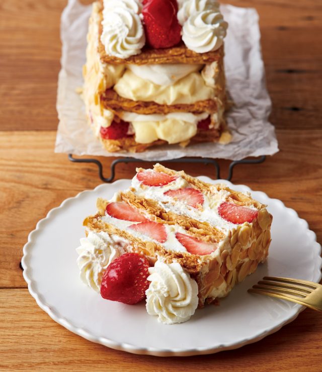 商品説明:サクサクのパイに、苺とホイップクリーム、カスタードクリームを合わせたスペシャルスイーツ。