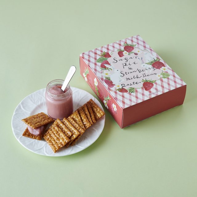商品説明:シュガーパイと春限定のいちごあんペースト、オリジナルスプーンをセットにしました。さくさくのパイにあんペーストをのせたり、サンドしたり、作りたての美味しさを楽しめるようになっています。