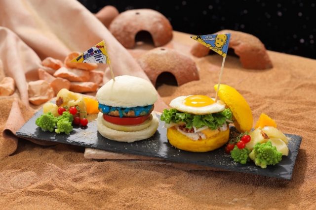 R2-D2はベシャメルソース、C3-POはミートソースを挟んだチキンバーガー。2名でシェアがおススメ!