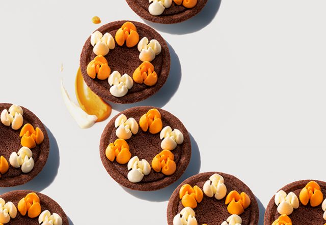 テーマは、“おしゃれを、かじる”。フルーツ&エピス香るベイクドスイーツの花びらを、ナッツ香ばしいベイクドショコラの大地に咲かせました。甘酸っぱくまろやかな「カシスバニラ」、爽やかな「カルダモンシトロン」の2味のセット。ふたつのオシャレを味わって!