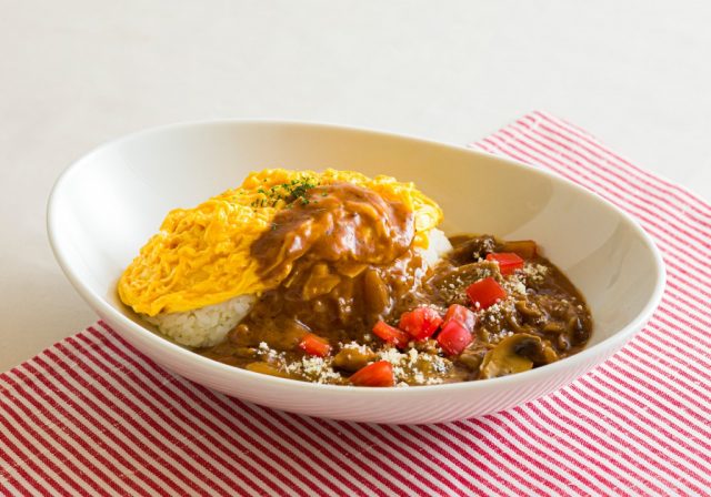 トロットロの半熟オムレツをのせてビーフストロガノフをかけたライスプレート。