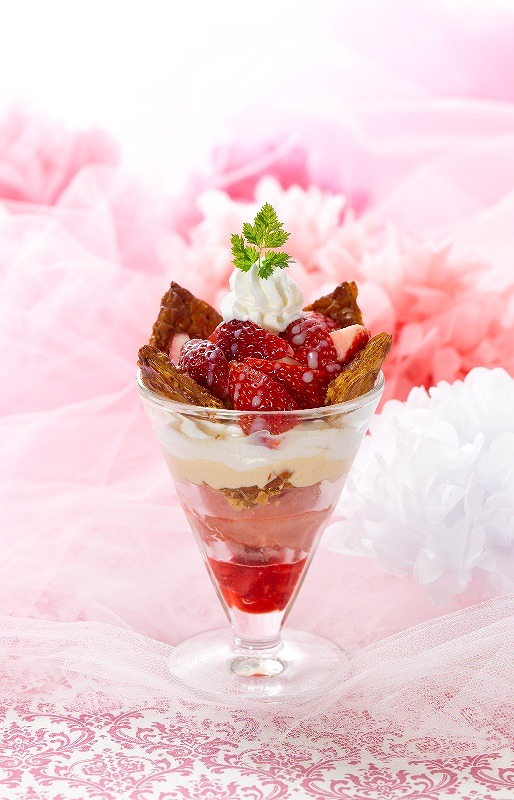 同フェアでは、「苺のミルフィーユパフェ」と「紅茶のシフォンケーキ~苺のソルベ添え~」が初登場。