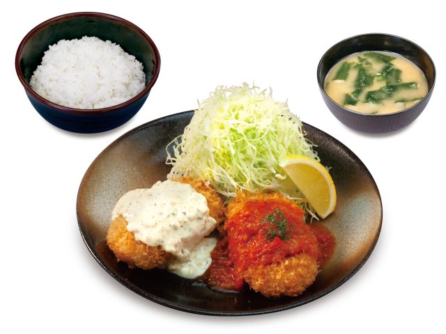 発売を記念して「カニ風味コロッケ定食」を注文の方に限り、1月22日(水)15時まで、「ロースかつ&カニ風味コロッケ定食」「カニ風味コロッケ&海老フライ定食」「大判ヒレかつ&カニ風味コロッケ定食」「カニ風味コロッケ&カキフライ定食」を注文の方に限り、販売期間中ライス大盛を無料サービスします。
