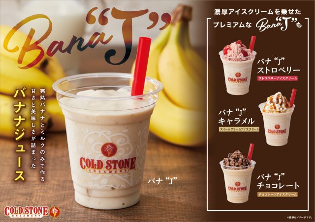 コールドストーンでしか味わえない、芳醇な甘さのバナナジュースと、濃厚なアイスクリームを組み合わせた、プレミアムBANA“J”を楽しむことが出来ます。