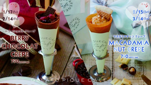 株式会社マッシュフーズ(代表取締役社長:雨宮 龍、本社:東京都千代田区)が運営する「gelato pique cafe(ジェラート ピケ カフェ)」グループでは、2020年1月17日(金)よりバレンタイン限定、2月15日(土)よりホワイトデー限定のクレープを販売します。