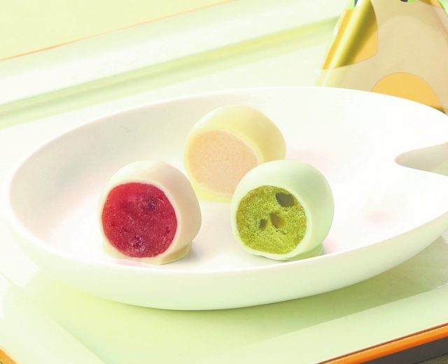 黄味あんのやさしい味わい「プレーン」、華やかな味わい「苺」、きざみ栗入りの「抹茶」。3種のあんをホワイトチョコレートで包んだお菓子です。