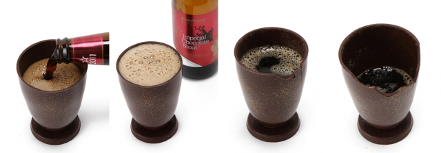 チョコレートグラスはチョコビールを注いで飲めるだけではなく、チョコレートビールを飲みながらグラスを一緒に食べることが出来るようになっています。