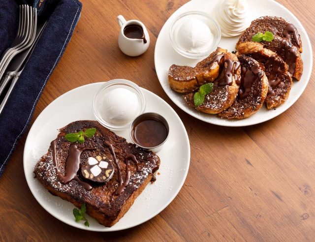 発売以来、人気の定番プレーンとブリオッシュプレーンがバレンタイン仕様で期間限定発売。チョコレートを使用したアパレイユに浸し焼き上げたフレンチトーストに、自家製チョコレートソースをたっぷりかけて味わえるようになっています。ブリオッシュはさらにチョコサラミをトッピングしています。