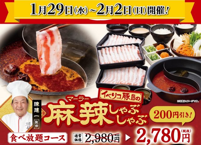 しゃぶしゃぶすき焼どん亭 フェアメニュー「麻辣しゃぶしゃぶ食べ放題コース」を特別価格で販売!